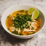 Gently reheat the soup over medium-low heat on the stove to preserve the delicate flavors. If the noodles have become too soft, consider adding fresh cooked noodles after reheating. Don’t forget to add fresh lime and cilantro before serving to revive the brightness.