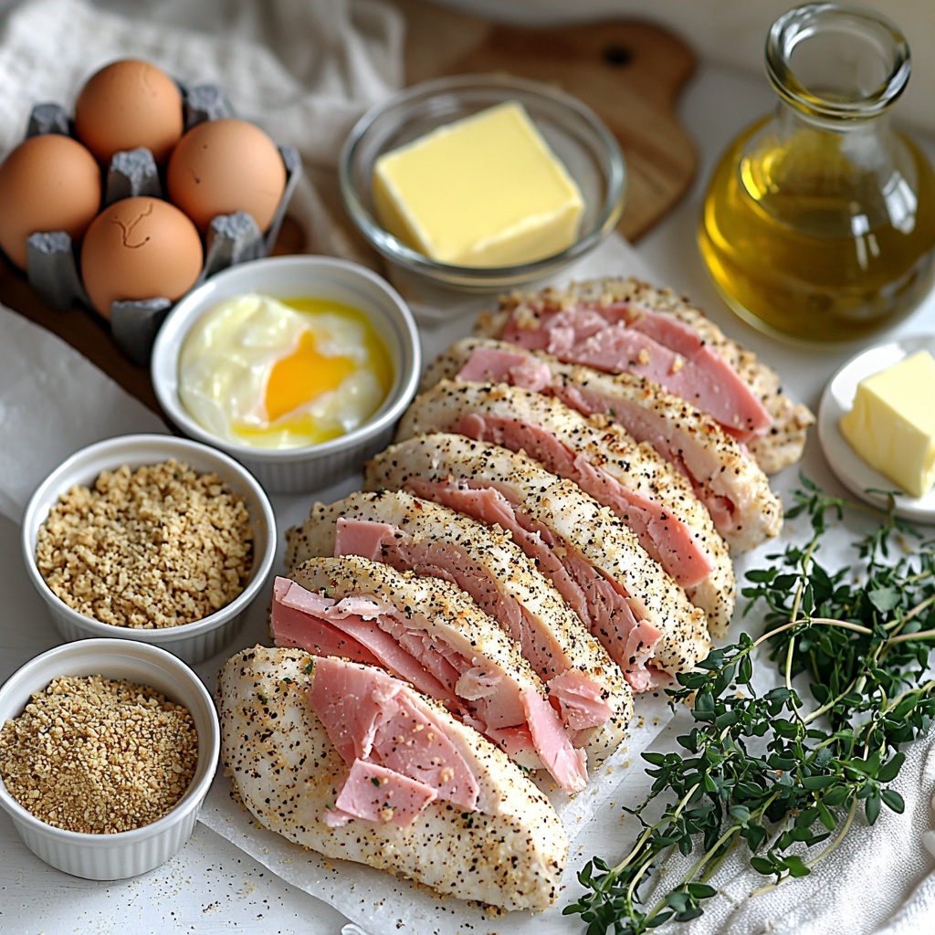 Simple, straightforward, and absolutely essential—these ingredients come together to create the magic of the Baked Chicken Cordon Bleu Recipe. Each one plays a key role: the chicken provides the hearty base, the ham adds savory saltiness, Swiss cheese lends its creamy richness, and the seasoned coating ensures a satisfyingly crispy exterior.