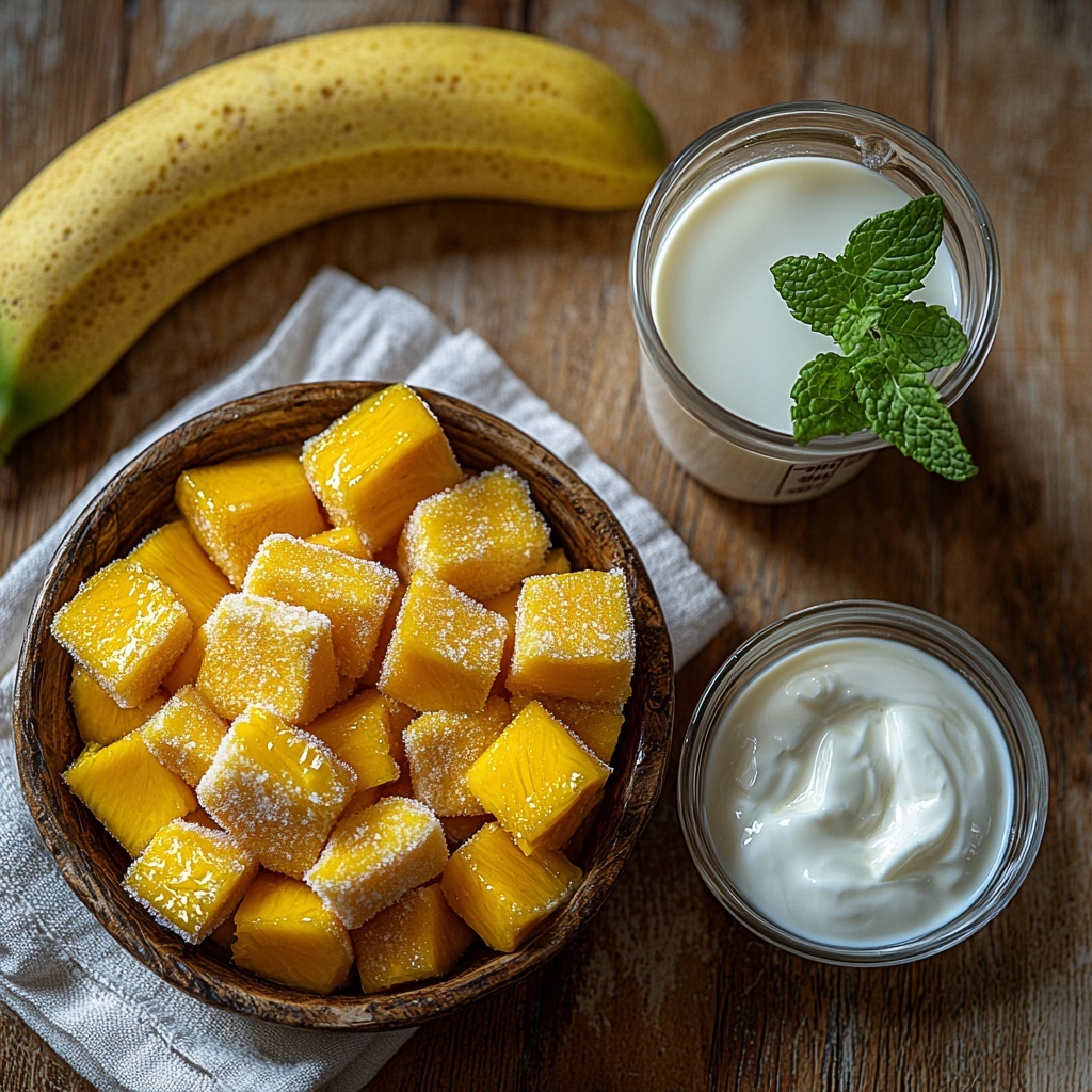 • 2 cups frozen mango pieces: Using frozen mango helps create the chilled, thick smoothie texture without adding ice, preserving flavor intensity.
