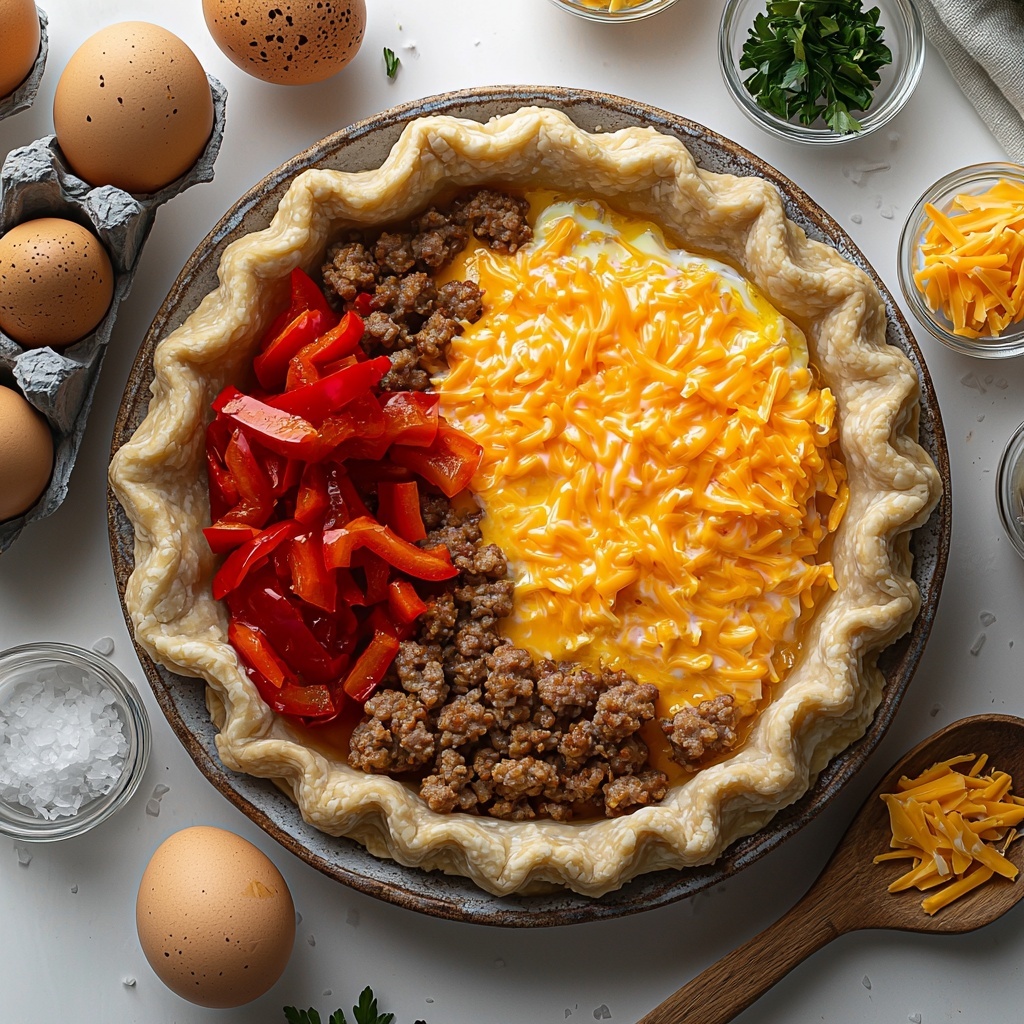 These ingredients are beautifully simple yet essential to creating the vibrant flavors and textures that make this quiche so irresistible. Each one plays a key role—from the savory sausage to the creamy eggs and the vibrant roasted red peppers that lend a delightful pop of color.