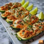 Pair these zucchini boats with crisp celery sticks or a crunchy mixed green salad to balance out the richness. A side of carrot sticks is also a classic buffalo companion that adds crunch and freshness without stealing the spotlight.