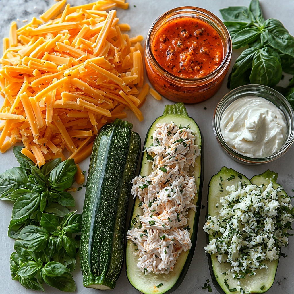 Gathering your ingredients for this dish is a breeze, and each one plays a vital role in bringing this Buffalo Chicken Zucchini Boats Recipe to life. From the freshness of zucchini to the creamy richness of cheeses, every component contributes to the harmony of flavors and textures on your plate.
