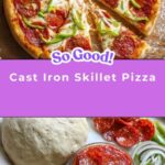 Enjoy a delicious homemade cast iron skillet pizza with a crispy crust and perfectly melted cheese. This easy recipe uses 12 oz of pizza dough baked in a hot cast iron skillet, layered with marinara sauce, mozzarella, pepperoni, and veggies, then finished with a buttery crust for extra flavor and crispiness.
