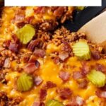 Cheeseburger Rice is a quick and flavorful one-pan meal combining seasoned ground beef, tangy barbecue sauce, creamy cheddar cheese, and crunchy bacon and pickles, all cooked together with instant rice for a cheesy, savory dish perfect for busy weeknights.