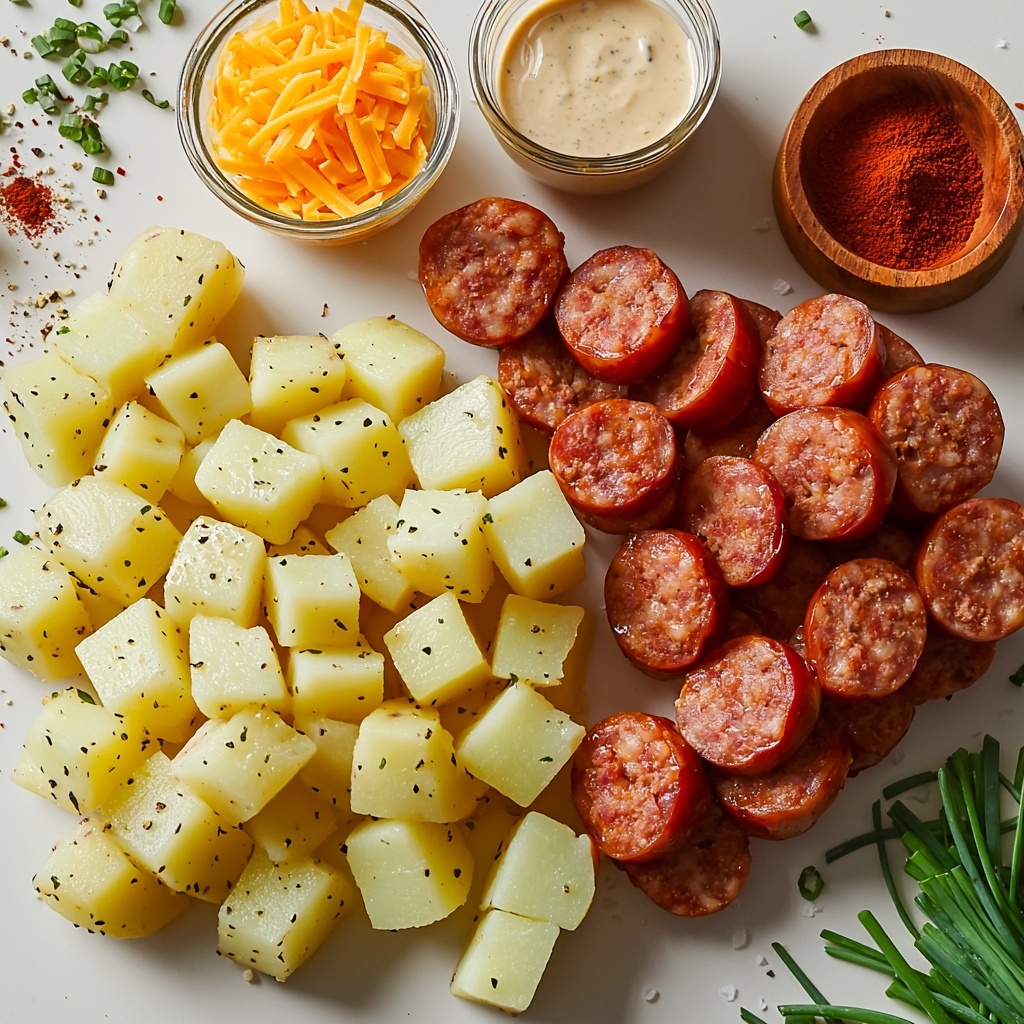 - 1 pound smoked sausage, sliced into 1/2-inch pieces: The smoky, savory sausage adds meaty richness that balances the creamy ranch and cheese.