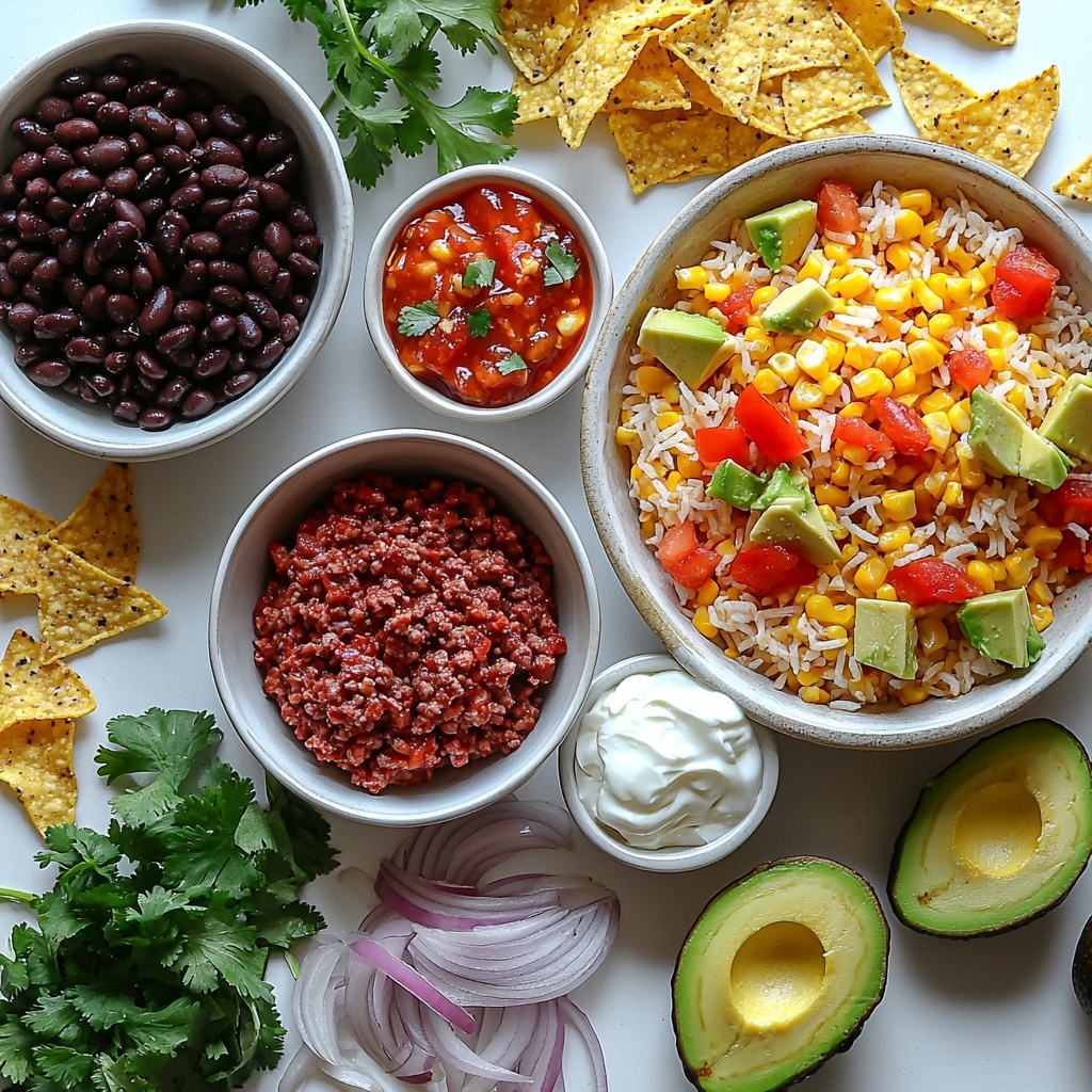 Don’t underestimate the power of garnishes here. Fresh cilantro like a sprinkle of green confetti lifts the dish, while creamy avocado slices soothe any heat from the taco seasoning. A cooling scoop of sour cream helps balance flavors and adds indulgence. Lastly, crushed tortilla chips not only add a delightful crunch but also introduce a nostalgic taco night vibe that everyone will adore.