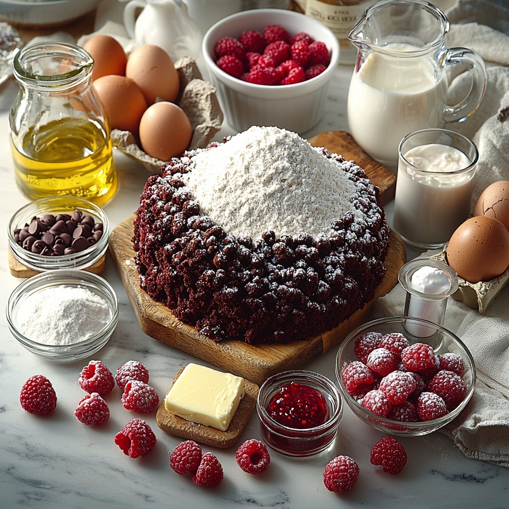 These ingredients are straightforward yet essential, each playing a unique role in crafting the rich texture, deep flavor, and stunning appearance of this Chocolate Raspberry Cake with Ganache Recipe. From the cocoa powder enriching the cake’s chocolatey base to the fresh raspberries adding natural tartness, everything comes together beautifully.