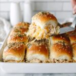 You can freeze assembled sliders before baking by wrapping the dish tightly with plastic wrap and aluminum foil to prevent freezer burn. Freeze for up to 2 months. When you’re ready to enjoy, thaw in the refrigerator overnight and then bake as directed, adding a few extra minutes to the cooking time.