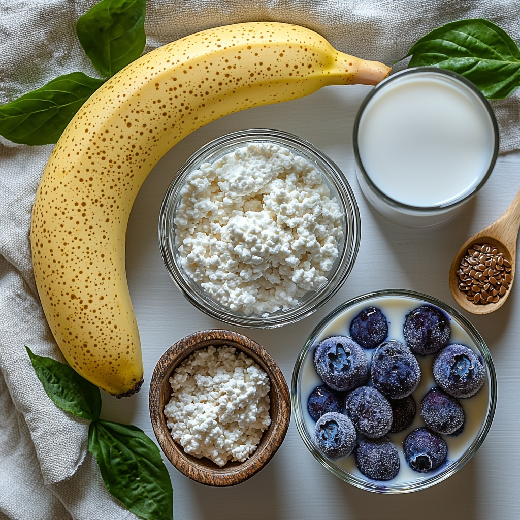Getting the perfect Creamy Blueberry Banana Protein Smoothie Recipe starts with a few simple ingredients that work together to deliver amazing flavor, texture, and nutrition. Each component plays a crucial role—from creamy cottage cheese providing smoothness and protein, to blueberries for color and antioxidants, creating a balanced, tasty blend.