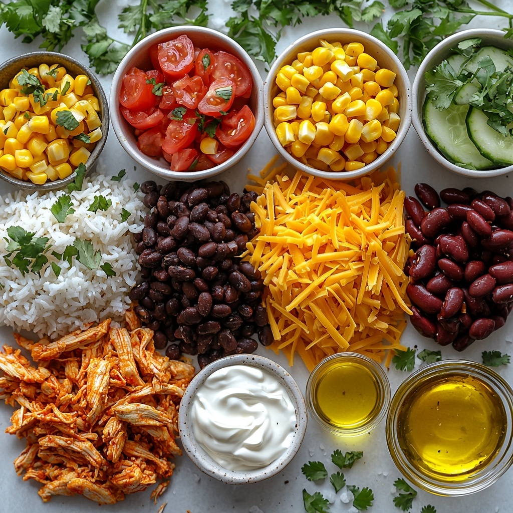 These ingredients are wonderfully straightforward yet work together to create a medley of flavors and textures that make the Creamy Chicken Burrito Bowl Recipe shine. Each item adds its own importance, from the tender chicken providing protein to the black beans and corn adding both texture and color.