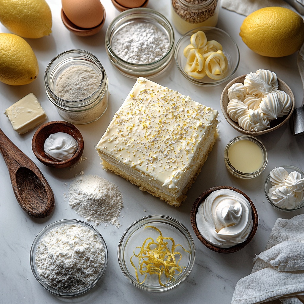 • Optional: Lemon zest, powdered sugar, white chocolate curls (for garnish): Simple touches that make your cake look as fabulous as it tastes.