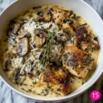 This Creamy Mushroom Chicken and Wild Rice Soup is a hearty and comforting dish featuring tender chicken, earthy mushrooms, and nutty wild rice all combined in a rich, creamy broth. Perfect for a cozy meal, this soup balances savory herbs and smooth textures for satisfying flavor in every spoonful.