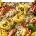 This Crock Pot Cheesesteak Tortellini is a comforting and easy slow-cooker meal that combines the flavors of classic cheesesteak with cheesy tortellini. Ground beef, bell peppers, and onions simmer with creamy mushroom soup and beef broth, then cooked tortellini and melted provolone cheese are added towards the end for a rich, hearty dish perfect for busy weeknights or cozy dinners.