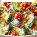 This Cucumber Ranch Crack Salad is a refreshing and flavorful dish perfect for warm days or as a vibrant side. Crisp cucumbers combined with creamy ranch dressing, sharp cheddar cheese, and crispy bacon create a delightful mix of textures and tastes. Enhanced with fresh vegetables and herbs, this salad is easy to prepare and offers an irresistible combination of savory and fresh flavors.