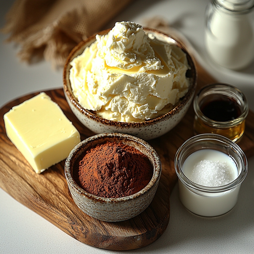 Getting the perfect texture and flavor in this frosting is all about the right ingredients. Each one plays a vital role—from the creamy base to the rich chocolate tones—so having everything ready ensures that dreamy, smooth finish we all want.