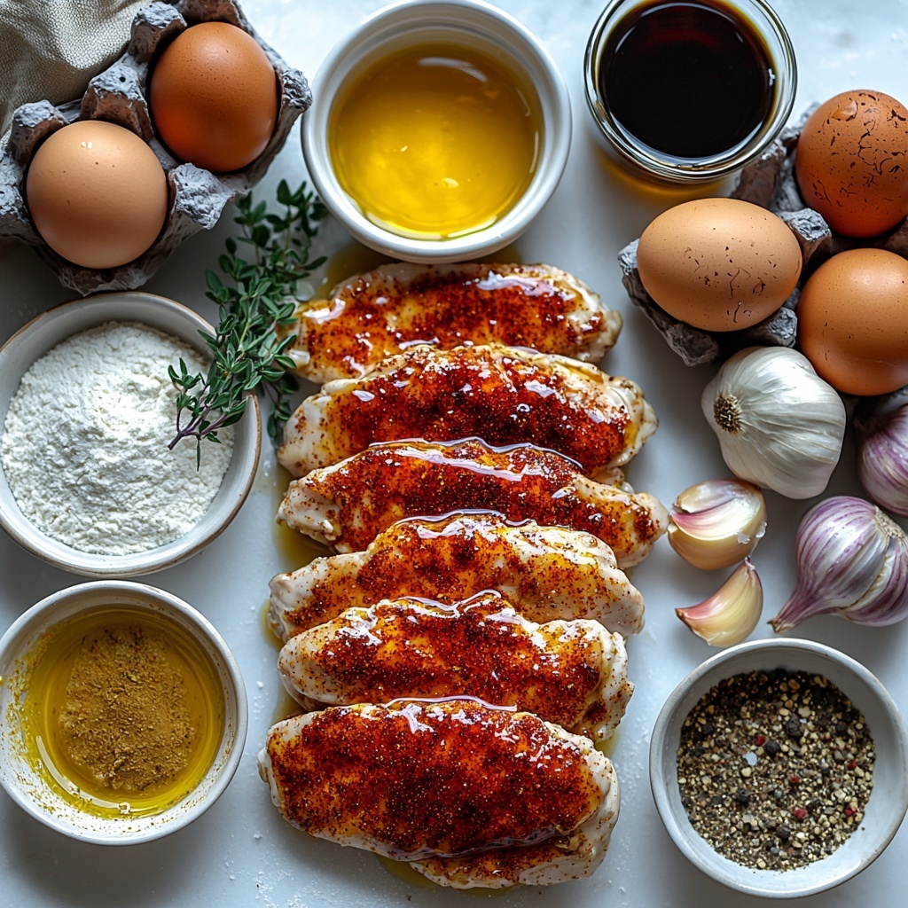 Gathering the right ingredients is the first step to creating this delicious dish. Each component plays a simple yet crucial role, from the blend of spices that adds warmth to the double coating that guarantees crunch, to the honey garlic glaze that ties everything together. Here’s everything you’ll need: