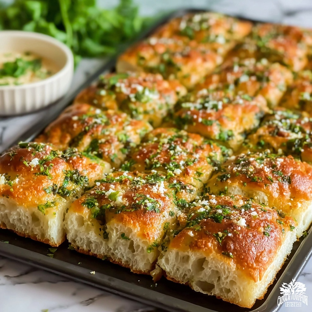 This Garlic Parmesan Focaccia recipe delivers a perfectly golden, airy, and crispy Italian bread infused with fragrant garlic, fresh herbs, and savory Parmesan cheese. Ideal as a side, snack, or appetizer, this step-by-step baking guide ensures a tender crumb with delightful dimples packed with a rich, olive oil and garlic topping. The recipe includes tips for kneading, rising, and baking to achieve a restaurant-quality focaccia at home.