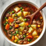 This Hearty Hamburger Soup Recipe has quickly become a personal favorite, and I hope it will be the same for you. It’s incredibly easy to prepare, wonderfully filling, and delivers all the satisfying flavors you want from a home-cooked meal. So next time you want to warm up your kitchen and your heart, give this recipe a try — I promise you’ll be smitten from the very first spoonful!