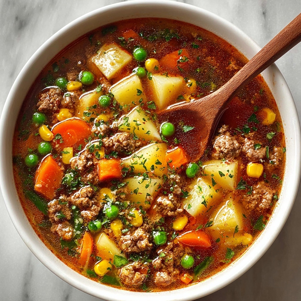 Adding a little something extra on top takes your Hearty Hamburger Soup Recipe from simple to stunning. Try a sprinkle of freshly chopped parsley or chives for a burst of color and freshness. A dollop of sour cream or shredded cheddar cheese can add creaminess and richness, making each spoonful even more indulgent. A crack of black pepper on top does wonders to awaken your taste buds.