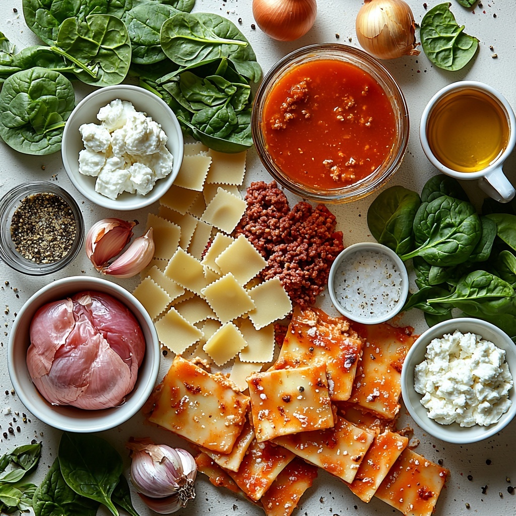 The magic of this High Protein Lasagna Soup: 5 Cozy, Delightful Bowls Recipe lies in its straightforward, wholesome ingredients. Each one plays a crucial role, from the savory depth provided by the ground turkey to the bright freshness of spinach and the rich creaminess of the cheeses—all coming together beautifully in every spoonful.