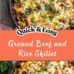 This Homemade Ground Beef and Rice Skillet is a hearty, flavorful one-pan meal perfect for busy weeknights. Ground beef is cooked with diced onion, green pepper, and garlic, then simmered with tomatoes, beef stock, rice, and seasonings. The dish finishes off with a melty cheddar cheese topping and fresh parsley for a delicious, comforting dinner that’s easy to make and packed with satisfying flavors.