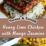 To plate, layer a generous scoop of the mango-infused jasmine rice on each plate and top with beautifully sliced honey lime chicken. Serve warm and enjoy the beautiful medley of flavors and textures in every forkful.