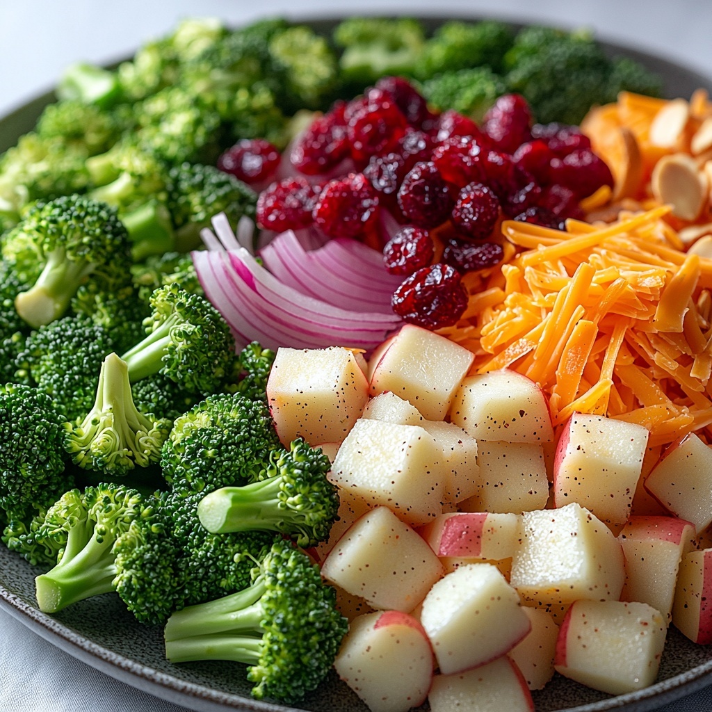 This recipe shines because of its straightforward yet thoughtfully chosen ingredients. Each one plays a vital role in creating a salad that’s texturally interesting, flavorful, and visually appealing — from the fresh crunch of broccoli to the sweet juiciness of the apples and the creamy tang of the dressing.