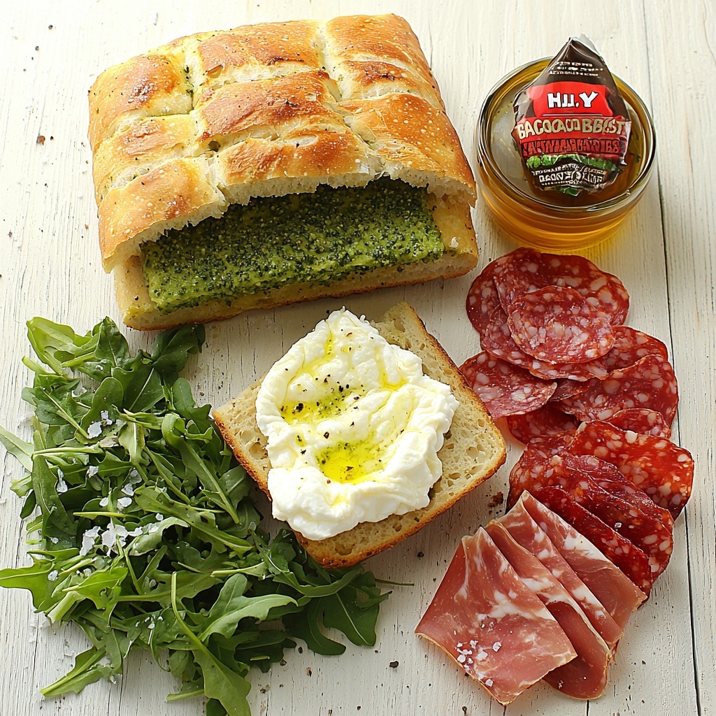 How to Serve Italian Focaccia Sandwich with Burrata, Prosciutto, and Salami Recipe