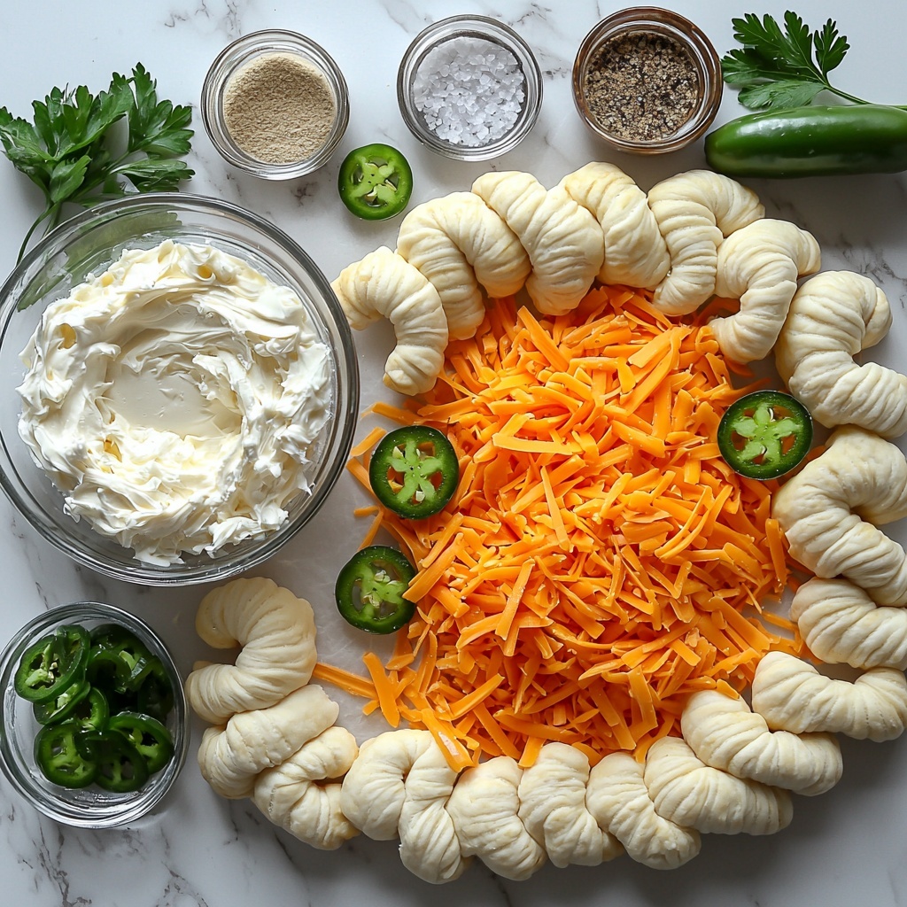 This Jalapeno Popper Twists Recipe shines because of its straightforward, accessible ingredients. Each element plays a crucial role: the creamy base, the spicy kick, the rich melt of cheddar, and the delicate crisp of the dough come together like magic.