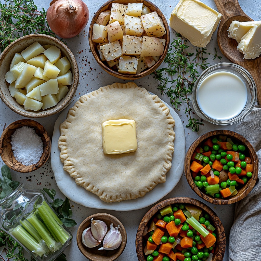 These ingredients are delightfully simple but come together to create a deeply satisfying pot pie that’s packed with flavor and texture. Each component plays a vital role — from the flaky pie dough creating that buttery outer shell to the medley of vegetables adding freshness and color.