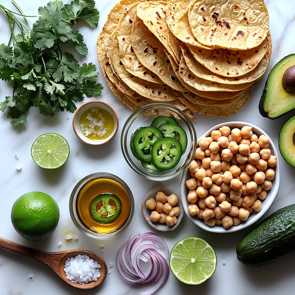 A vibrant and refreshing Marinated Cilantro Lime Bean Salad featuring a tangy citrus dressing, pickled jalapeños, and creamy avocado served on crispy tostadas. This plant-based dish combines chickpeas, cannellini beans, fresh cucumbers, and red onions with a flavorful garlic-lime dressing, perfect for a light lunch or a crowd-pleasing appetizer.