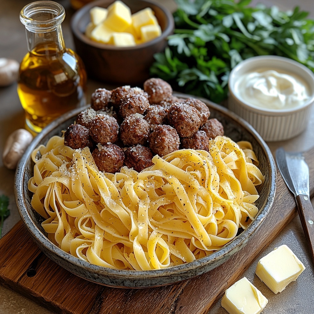 For a charming dinner party presentation, you could serve the meatball stroganoff in individual shallow bowls, garnished with fresh herbs and a sprinkle of Parmesan. Alternatively, layered in a deep ceramic dish with some toasted baguette slices on the side creates an inviting, rustic vibe that encourages family-style sharing. For a low-carb twist, try spooning the meaty stroganoff over roasted cauliflower rice or creamy mashed potatoes instead of noodles for something a little different.