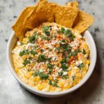 This Mexican Street Corn Dip is a creamy, tangy, and mildly spicy appetizer inspired by the flavors of traditional Mexican elote. Combining sweet corn, tangy lime, creamy mayonnaise and sour cream, crumbled cotija cheese, and a blend of chili and garlic powders, this dip is perfect for dipping tortilla chips at any gathering. It’s a no-cook, easy-to-prepare dish that delivers authentic street food flavor in a convenient dip form.