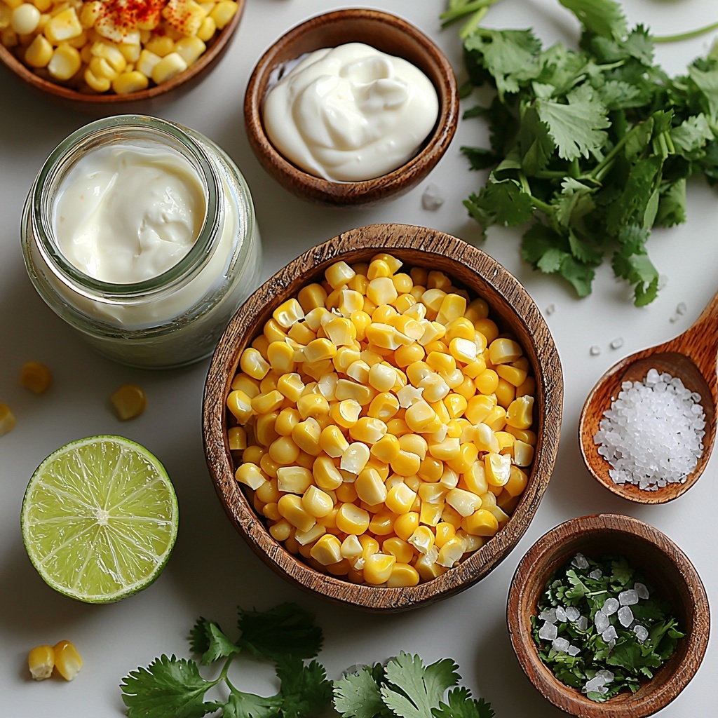These ingredients are refreshingly straightforward yet come together to create an explosion of flavor and texture. Each element plays a vital role, from the juicy sweetness of corn to the creamy richness of sour cream and mayo, making this dish both luscious and inviting.
