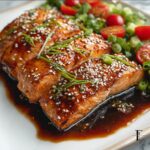 This Miso-Glazed Roasted Salmon recipe offers a quick and flavorful dinner option featuring tender salmon fillets marinated in a savory miso blend and roasted to perfection. Enhanced with garlic, ginger, and a sweet soy-honey glaze, it’s a balanced, nutritious meal that pairs beautifully with steamed rice and fresh vegetables.