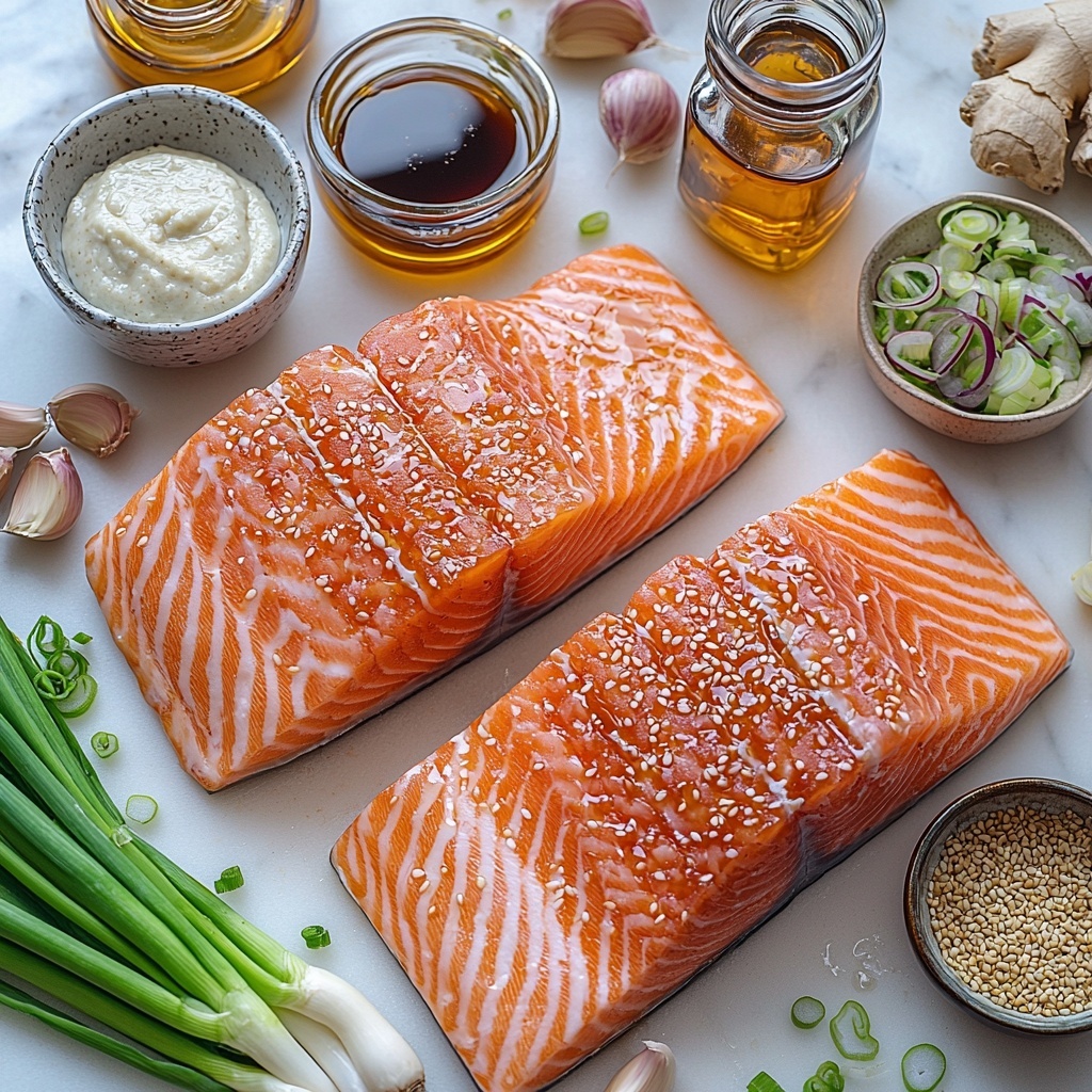 Gathering the right ingredients is key for this dish to shine, and the beauty is how straightforward yet essential each component is. They come together to create a harmony of flavors and textures—from the creamy glaze to the perfectly roasted salmon skin and the fresh garnishes that add color and crunch.