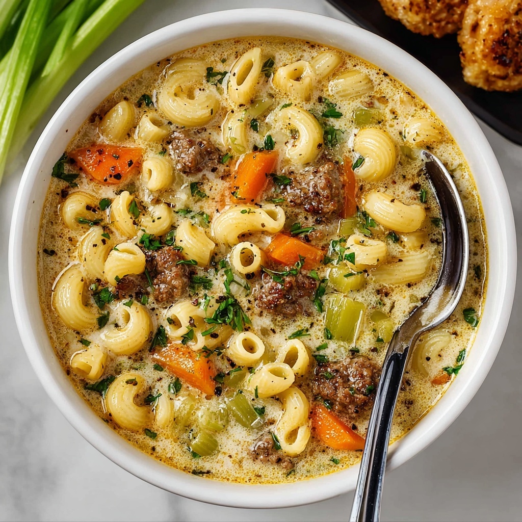 If you have ever dreamed of combining all the deliciousness of a cheeseburger and the comforting warmth of a creamy soup, then this One Pot Macaroni Cheeseburger Soup Recipe is your new best friend in the kitchen. It’s a hearty, flavorful hug in a bowl, blending juicy ground beef, sharp cheddar cheese, tender macaroni, and crisp veggies into a luscious, cheesy broth. Plus, the crispy sesame seed bun croutons on top add a fabulous crunch that will have you savoring every spoonful. Trust me, once you try this recipe, it becomes an instant favorite for cozy dinners and crowd-pleasing meals alike.