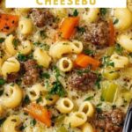 This hearty One Pot Macaroni Cheeseburger Soup is a comforting blend of ground beef, tender macaroni, and a creamy, cheesy broth. Infused with aromatic herbs and vegetables, it’s topped with crispy homemade sesame seed croutons for an irresistible texture contrast. Perfect for a family meal, this soup combines the best flavors of a cheeseburger in a warm, satisfying bowl.