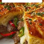 This Philly Cheese Steak Crescent recipe is a delicious and easy-to-make twist on the classic Philly cheesesteak sandwich, wrapped in flaky crescent roll dough and baked to golden perfection. A satisfying dish featuring tender ribeye steak, sautéed onions and bell peppers, melty provolone cheese, and a savory garlic and Worcestershire seasoning, perfect for gatherings or a flavorful weeknight meal.
