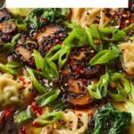 Ladle the soup into bowls and sprinkle sliced green onions and fresh cilantro on top. These fresh garnishes add a pop of color and brightness, perfect for enjoying every spoonful of this Potsticker Soup: A Comforting Delight Recipe.