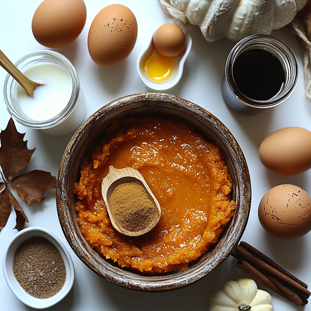 - Pumpkin puree: The star ingredient that brings earthy sweetness and a gorgeous orange hue to the custard.