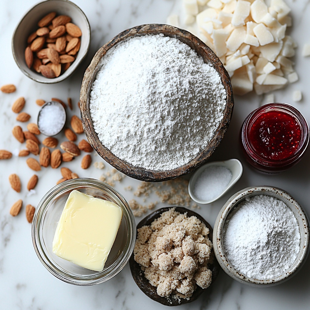 Whipping up these cookies requires only a handful of simple yet thoughtfully selected ingredients, each playing a crucial role in creating that perfect balance between buttery richness, nutty depth, and fruity brightness.