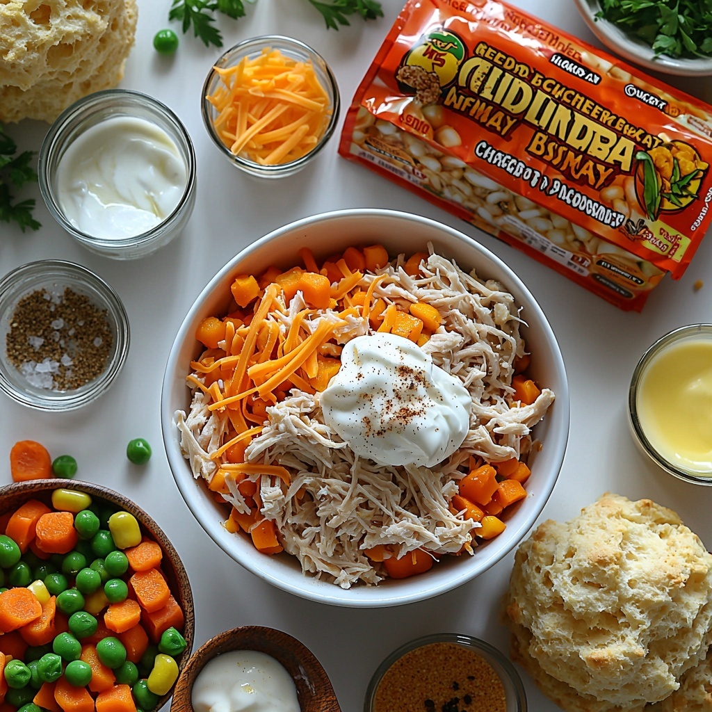 This recipe uses straightforward, pantry-friendly ingredients that come together effortlessly but deliver big on flavor, texture, and that perfect home-cooked look. Each element plays a key role from the creamy filling to the cheesy biscuit topping that makes this dish unforgettable.