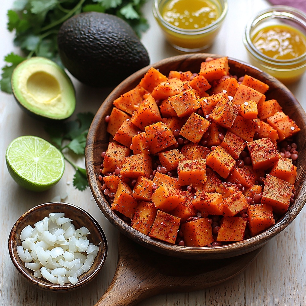 The beauty of this recipe lies in its simple, wholesome ingredients, each chosen to complement and elevate the dish’s flavor and texture. The sweet potatoes add natural sweetness and creaminess, lentils provide protein and earthiness, and spices bring warmth and depth. The creamy avocado lime sauce and mango chutney add that bright, refreshing finish.