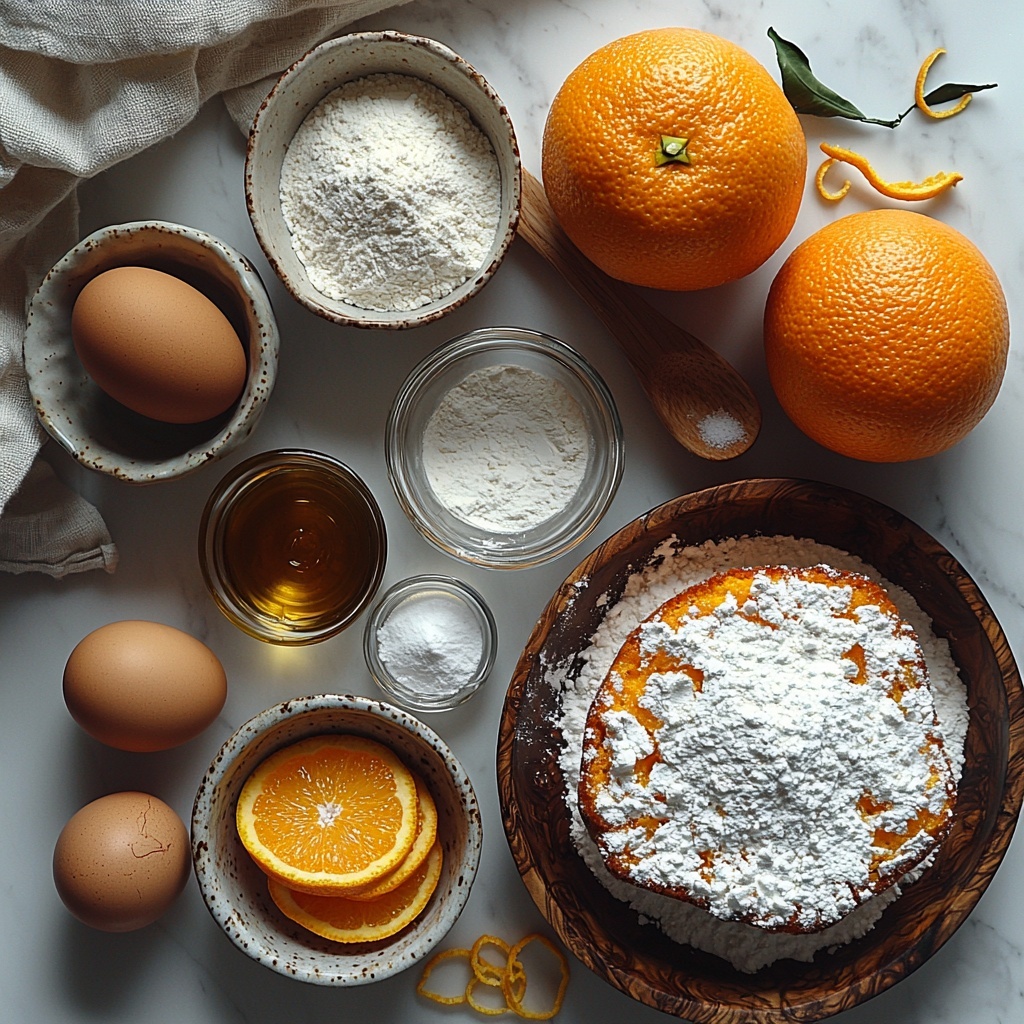 The magic of this Sicilian Orange Cake Recipe lies in its straightforward, thoughtfully chosen ingredients. Each one plays a vital role, from lending moisture and texture to enhancing that vibrant orange flavor that shines throughout the cake.