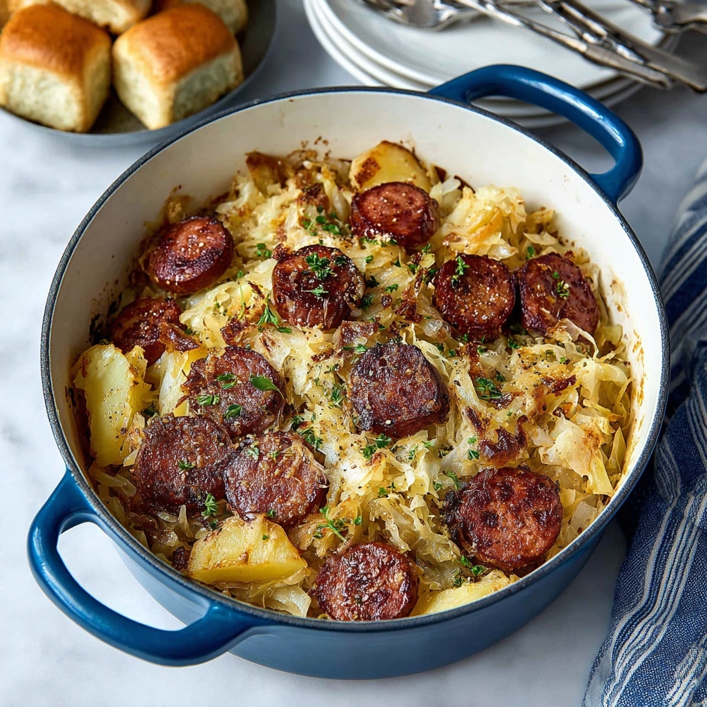 Consider serving this Skillet Kielbasa and Sauerkraut with Apples Recipe straight from the skillet for a rustic, family-style feel that invites everyone to dig in. You can also stuff the mixture into warm pretzel buns for an easy handheld meal or pile it over cooked sauerkraut spaetzle for a delightful German-inspired twist.