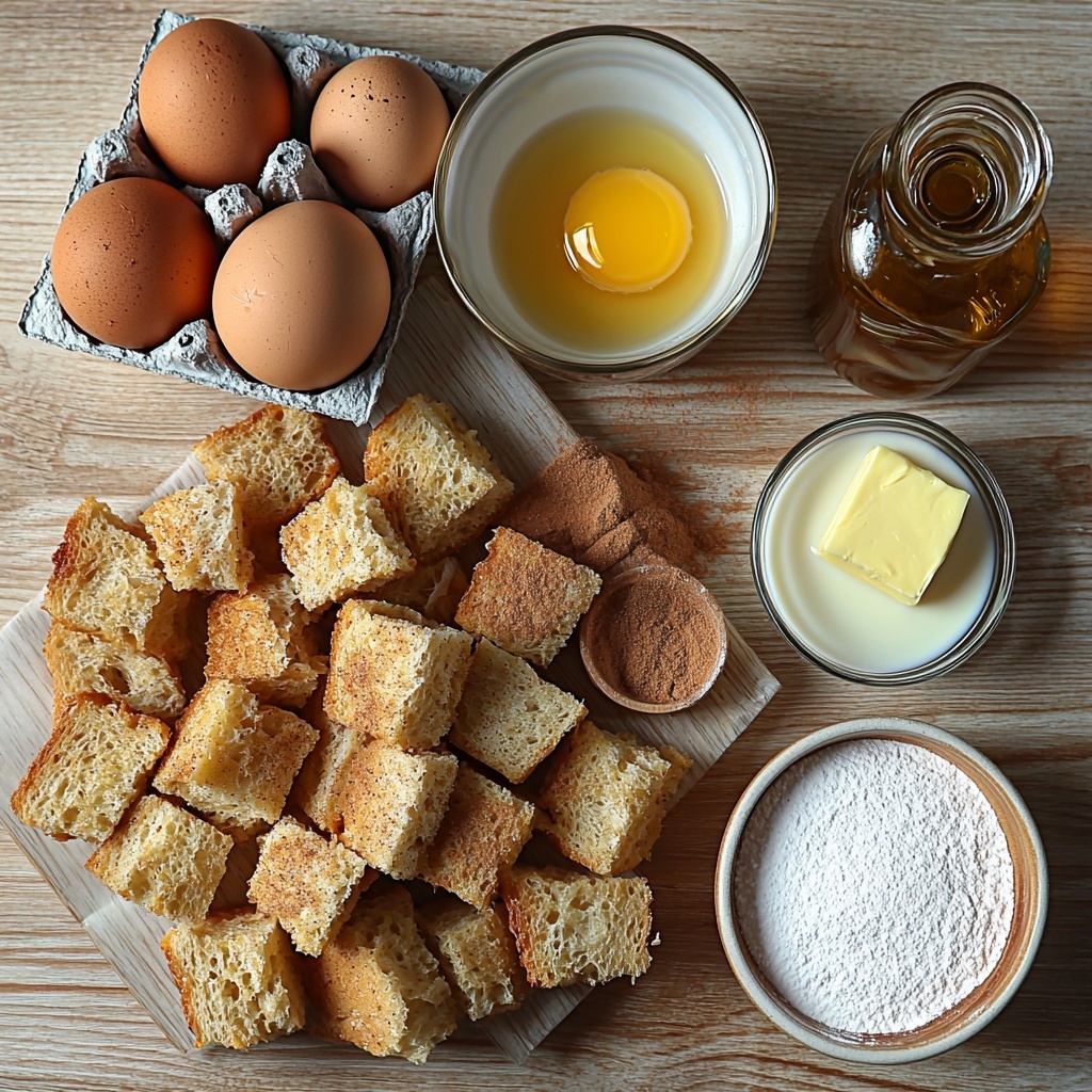 These ingredients are wonderfully straightforward yet essential, each playing a key role in building the rich flavors, perfect texture, and inviting aroma of this casserole. From the humble bread cubes acting as the soft, spongy base to the cinnamon and brown sugar topping delivering warmth and sweetness, every component comes together seamlessly.