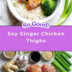 Soy Ginger Chicken Thighs are tender, juicy chicken thighs marinated in a flavorful blend of soy sauce, ginger, garlic, and a touch of sweetness from brown sugar. Baked to perfection and finished with optional sesame seeds and scallions for a delicious Asian-inspired dish that’s perfect for any night of the week.