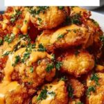 This Spicy Bang Bang Chicken recipe features crispy, golden fried chicken tenderloins coated in a flavorful, creamy sauce made from mayonnaise, Thai sweet chili sauce, Sriracha, and honey. The chicken is first marinated in buttermilk for tenderness, then dredged in a seasoned flour mixture, egg wash, and panko breadcrumbs before being deep-fried to perfection. Topped with chopped parsley, this dish offers a perfect balance of heat, sweetness, and crunch, ideal for a satisfying appetizer or main course.