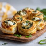 To reheat your spinach puffs, pop them into a preheated oven at 350°F (175°C) for about 10 minutes. This reheating method crisps the puff pastry perfectly, reviving its flaky texture while warming the filling through. Avoid microwaving, as it tends to make pastries soggy.